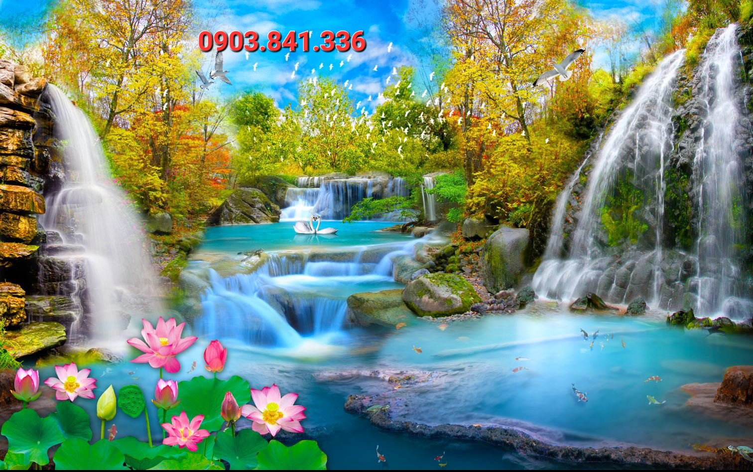 Sử dụng công nghệ ịn 3D và 5D hiện đại, chân thực sắc nét, các mẫu giấy dán tường 3d phòng khách, tranh dán tường khổ lớn khiến toàn bộ không gian nhà bạn trở nên sinh động và cực kỳ chân thực. Khách hàng sẽ cảm thấy vô cùng thư giãn và thoải mái khi được tận hưởng cảm giác sống trong một không gian sang trọng và lịch sự nhất, cảm giác hòa mình vào thiên nhiên với những bức tranh 3D phong cảnh khổ lớn đẹp và hiện đại.- Giá: Liên hệ
